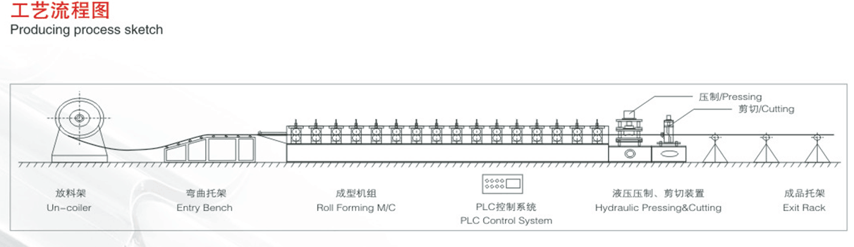 主要由进料导入平台、成型主机、成型剪切装置、液压站、电脑控制系统等几部分组成。