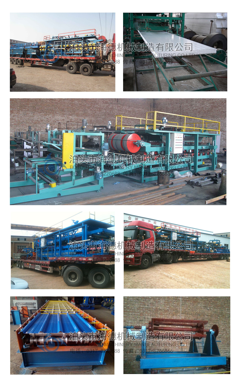 全套流水线放料机构、压型机构(压筋、涂胶、加温、复合、卷边、开槽、整边、气动、自动切割)组成,是生产工业厂房、仓库等屋面板和墙板不可缺少的设备。
