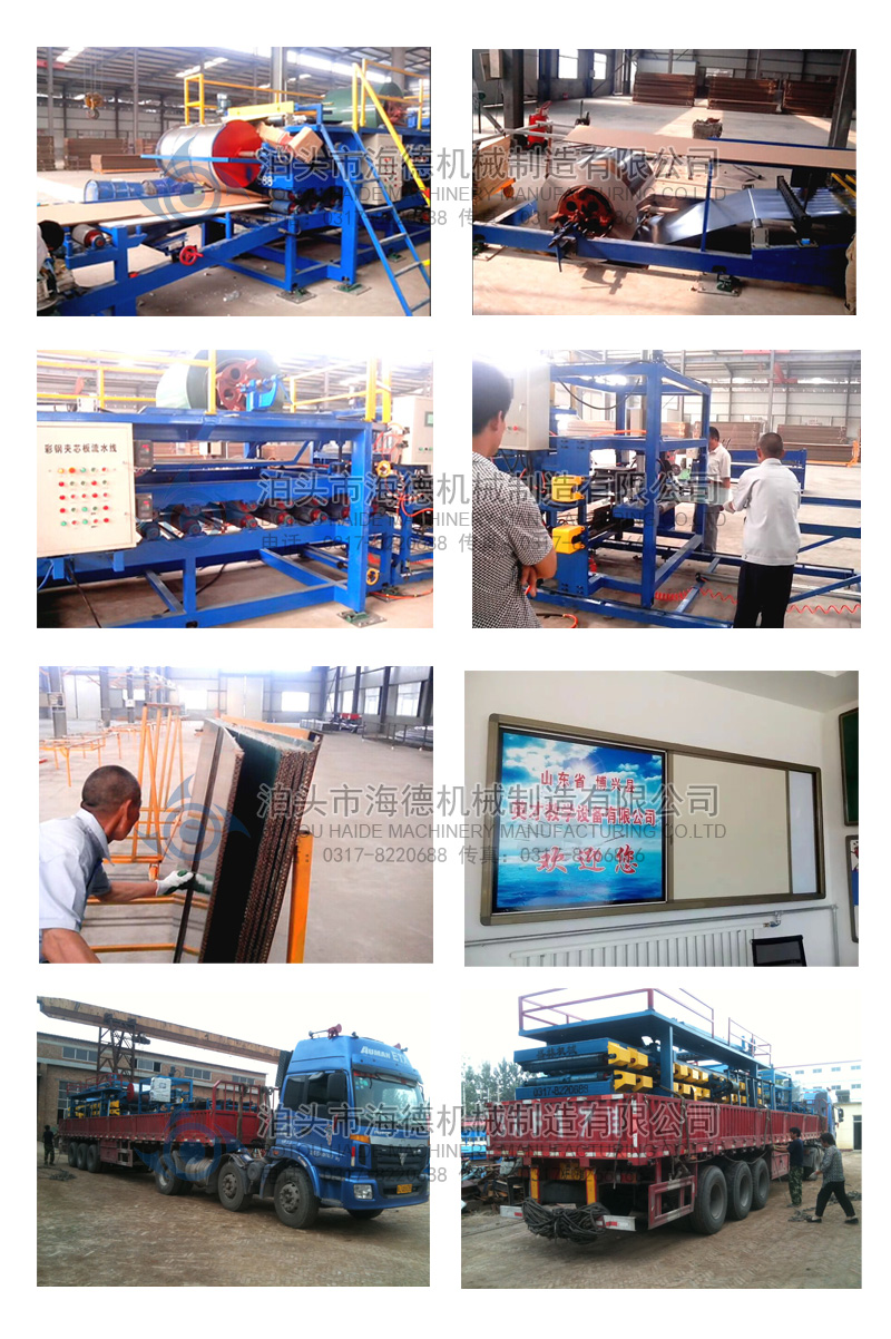 由于市场上出现的各类黑板产品采用人工覆板工艺,生产出的黑板多存在质量不稳定,审查工艺落后,效率低,能原料损耗高,人工成本高等问题。我们的技术研发部,精心研制出黑板板全自动覆板流水线,真正做到了生产工艺先进、产品品质稳定,节能降耗,及大规模生产的市场需求。 使用自动化覆板流水线作业,喷胶,压固,切割下料;胶水为双组份专用胶水,流水线自动粘合成型,粘合面达100%,一次成型。